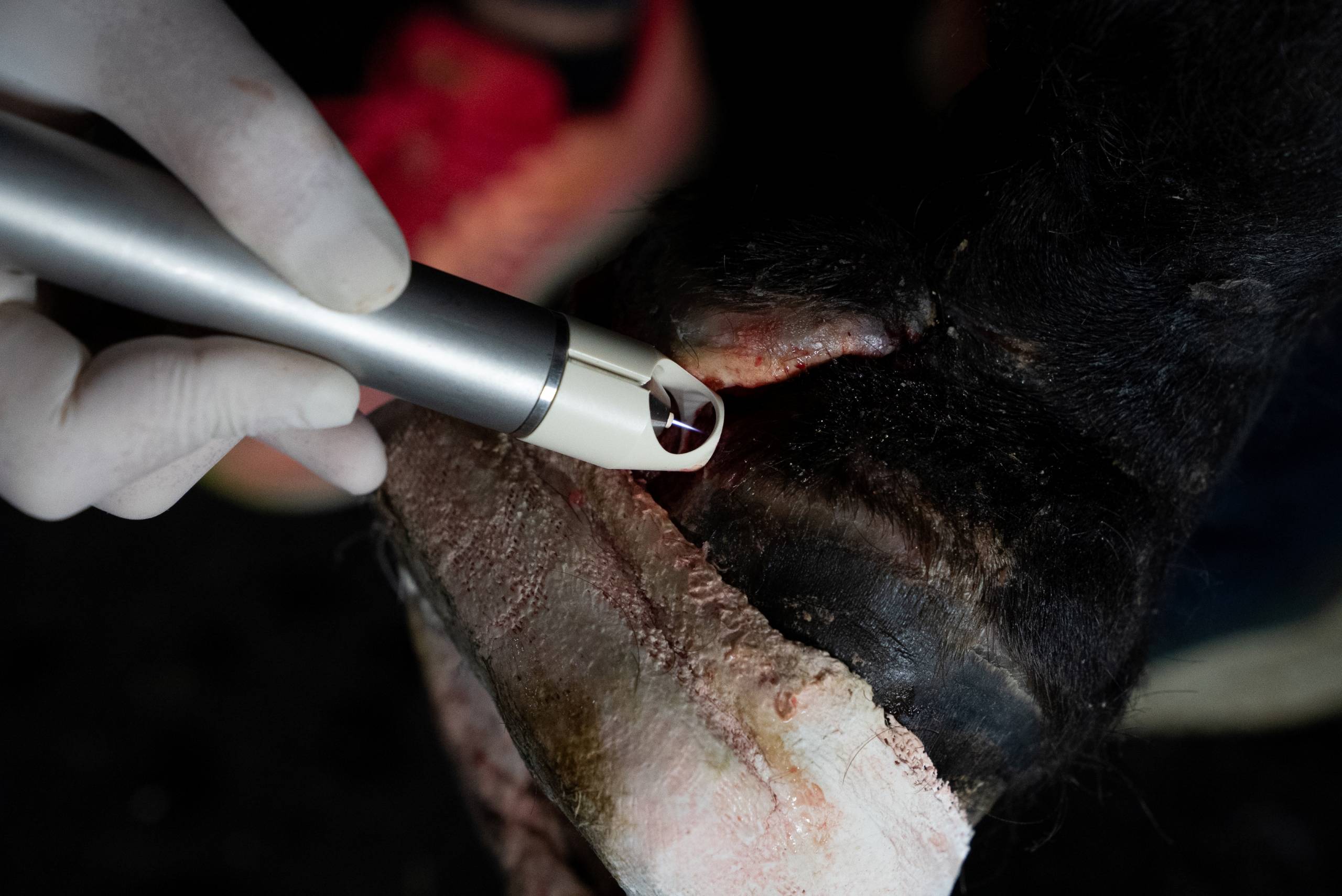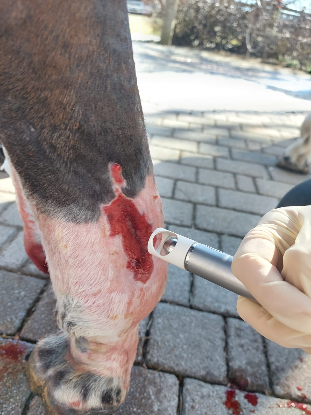 Kaltplasma führt zu einer verminderten Narbenbildung und die Pferde lassen sich die schmerzlose Behandlung in der Regel sehr gut gefallen.